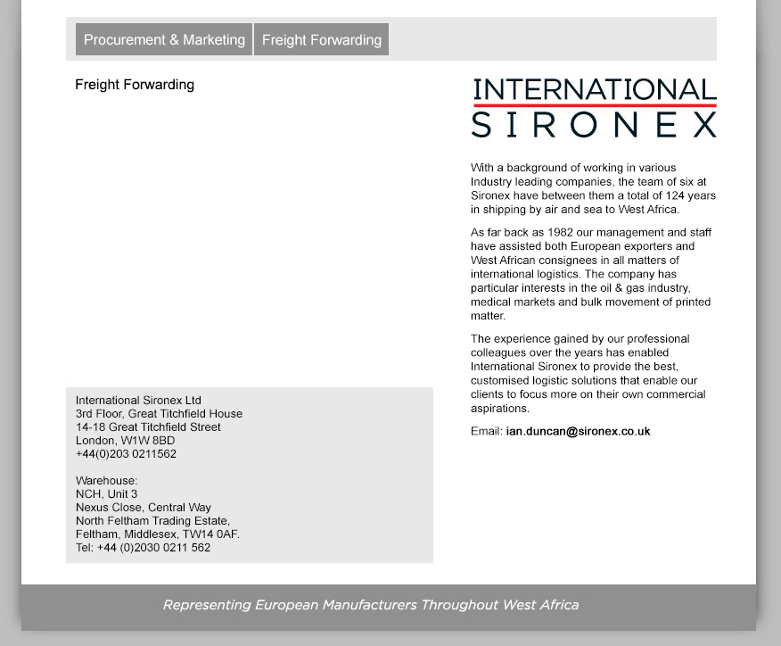 Sironex also provide a procurement service to organisations and local government in the region who are seeking technical advice and assistance in sourcing from all parts of the world at the most competitive prices